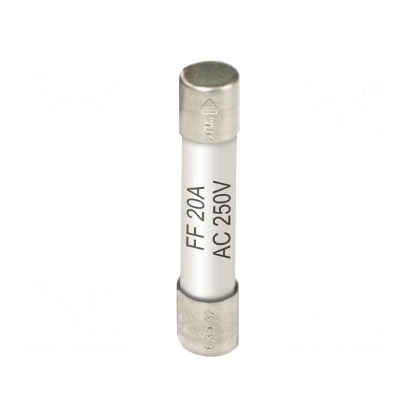 Bezpiecznik 20A, 250V, wymiary 6,3x32mm, zestaw 10 sztuk