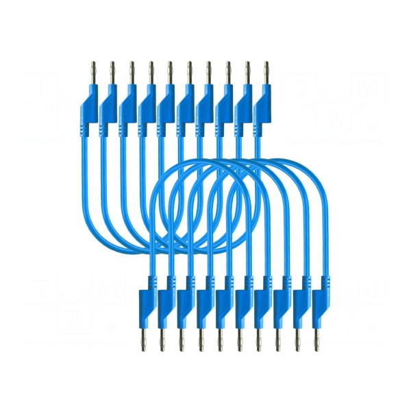 Konstrukcja opiera się na wtykach bananowych 4mm umieszczonych obustronnie. Wersja złącza cechuje się nieizolowanym wykonaniem z gniazdem osiowym 4mm. Przewód występuje w kolorze niebieskim.