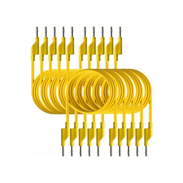 Wersja złączy charakteryzuje się konstrukcją nieizolowaną z gniazdem osiowym 4 mm. Parametry elektryczne przewodu pozwalają na pracę przy maksymalnym prądzie o natężeniu 10 A oraz przy napięciu maksymalnym wynoszącym 50 V AC lub 120 V DC. Produkt dostępny jest w kolorze żółtym.
