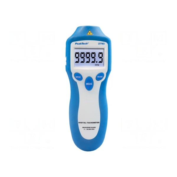 Tachometr PEAKTECH P2790 służy do optycznego pomiaru prędkości obrotowej w zakresie od 2 do 99999 obr./min. Urządzenie charakteryzuje się dokładnością pomiaru na poziomie 0,05% oraz rozdzielczością 0,1 rpm. Wyniki są prezentowane na 5-cyfrowym wyświetlaczu LCD wyposażonym w funkcję podświetlenia, co umożliwia odczyt danych w trudnych warunkach oświetleniowych.