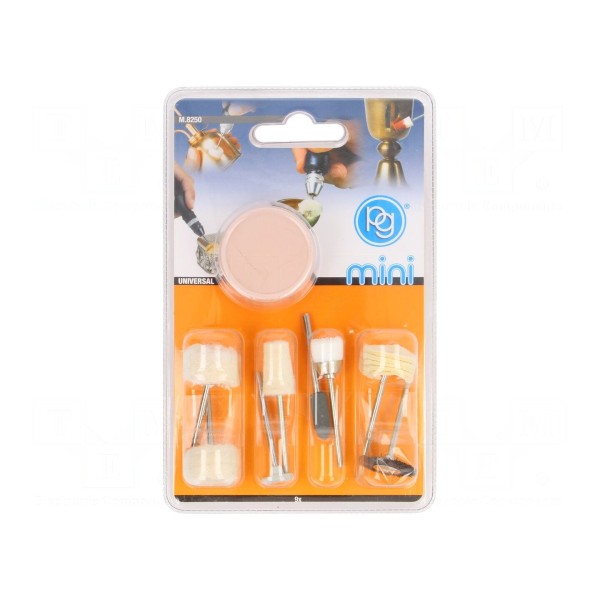 Zestaw zawiera akcesoria przeznaczone do montażu w wiertarkach, obejmujące 9 elementów. Komplet został zaprojektowany do prac związanych z czyszczeniem oraz polerowaniem powierzchni.