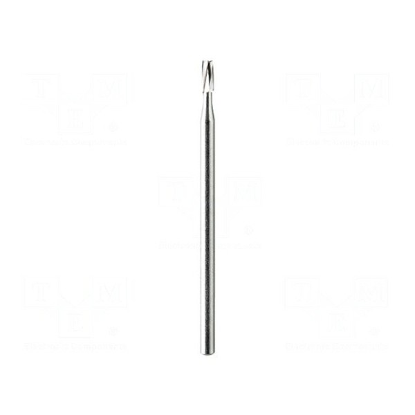 Frez szybkotnący wykonany z węglika spiekanego przeznaczony jest do obróbki materiałów przy użyciu narzędzi obrotowych. Średnica końcówki roboczej wynosi 1,8mm, a średnica trzpienia mocującego ma wymiar 2,35mm.