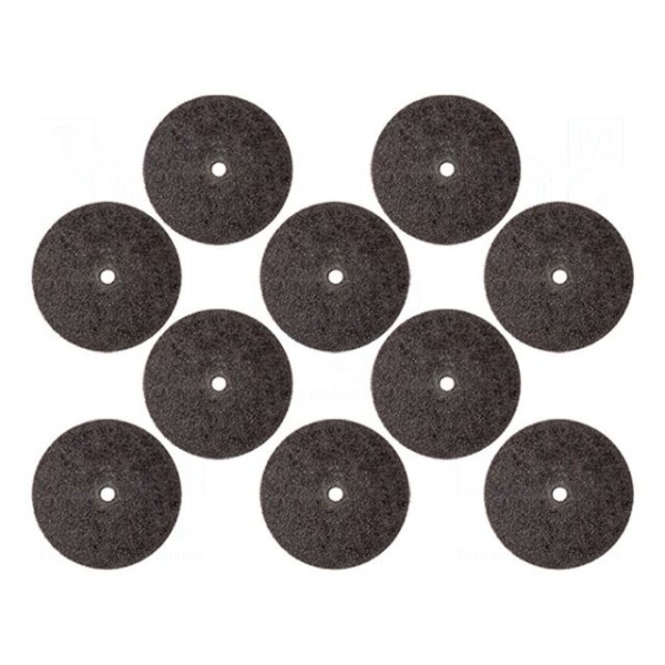 W zestawie znajduje się 10 sztuk tarcz. Elementy te są przystosowane do prac z wykorzystaniem elektronarzędzi.