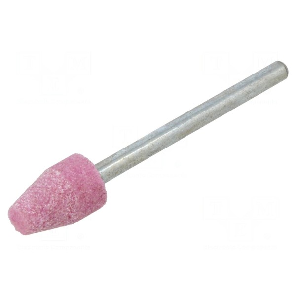 Element wyposażony jest w trzpień o średnicy 3 mm, który pozwala na montaż w uchwytach narzędziowych o tym samym rozmiarze gniazda. Materiał ścierny charakteryzuje się trwałością podczas pracy z różnymi typami obrabianych elementów.