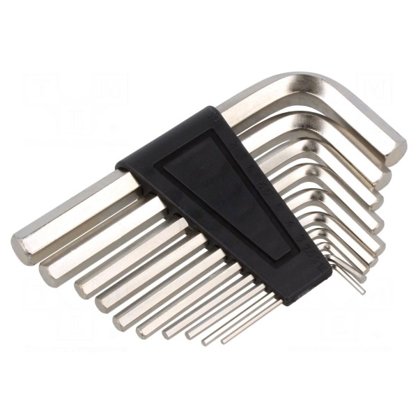 Zestaw zawiera 10 kluczy typu imbus wykonanych w standardzie HEX. W skład kompletu wchodzą narzędzia o rozmiarach 1,5mm, 2mm, 2,5mm, 3mm, 4mm, 5mm, 5,5mm, 6mm, 8mm oraz 10mm.