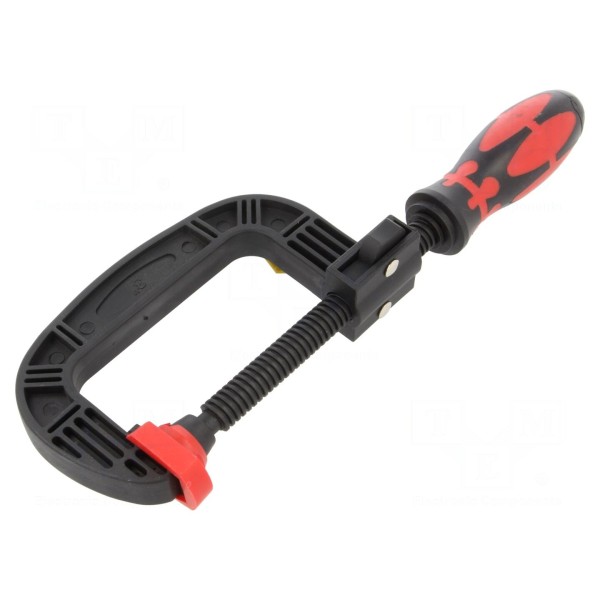 Ścisk uniwersalny typu C służy do stabilnego mocowania przedmiotów w pracach montażowych i warsztatowych. Narzędzie charakteryzuje się zakresem chwytania wynoszącym maksymalnie 75mm.