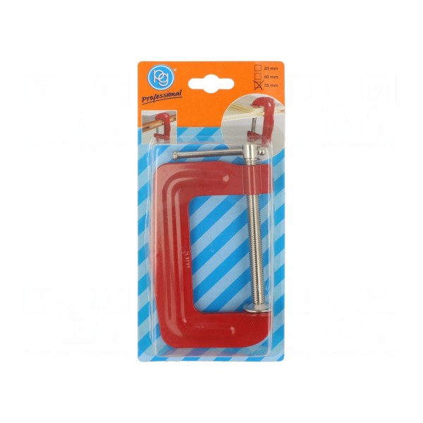 Ścisk uniwersalny typu C został zaprojektowany do stabilnego unieruchamiania elementów podczas prac montażowych. Konstrukcja narzędzia pozwala na pewny docisk obrabianych materiałów w zakresie do 75 mm.