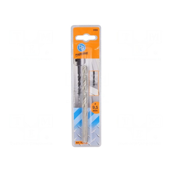 Wiertło przeznaczone do obróbki metalu, wykonane ze stali szybkotnącej HSS. Średnica narzędzia wynosi 9,5mm, co pozwala na wykonywanie otworów o określonym wymiarze w materiałach takich jak aluminium, stal oraz żeliwo.
