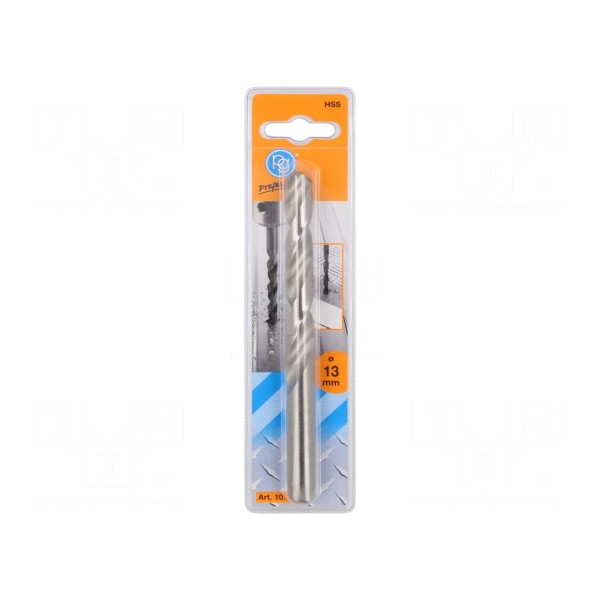 Wiertło do metalu o średnicy 13 mm zostało wykonane ze stali szybkotnącej HSS. Konstrukcja narzędzia jest zgodna z normą DIN 338. Produkt przeznaczony jest do obróbki aluminium, stali oraz żeliwa. Wiertło dostarczane jest w opakowaniu typu blister.