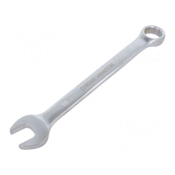 Klucz płasko-oczkowy dwustronny 15mm, stal chromowo-wanadowa