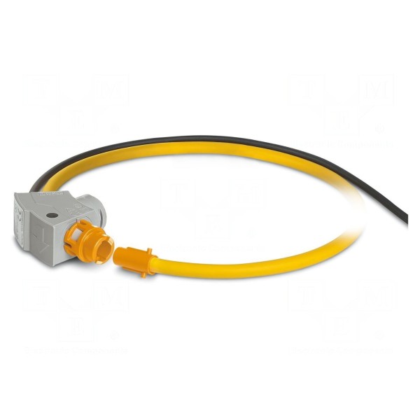 Konstrukcja urządzenia zapewnia klasę szczelności IP54, co pozwala na pracę w temperaturach od -30 do 80°C. Obudowa elementu utrzymana jest w kolorze żółtym.