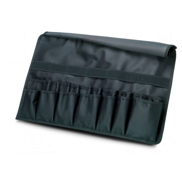 Etui wykonane z poliestru przeznaczone jest do przechowywania oraz zabezpieczania narzędzi i akcesoriów. Produkt utrzymany jest w czarnej kolorystyce.