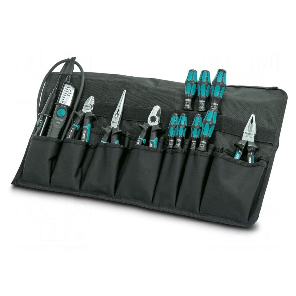 Wśród narzędzi znajdują się szczypce uniwersalne typu kombinerki o długości 180 mm, szczypce do cięcia bocznego oraz szczypce do chwytania. Całość dostarczana jest w dedykowanym etui, które ułatwia przechowywanie i transport narzędzi. W zestawie: próbnik napięcia, szczypce do chwytania, szczypce do cięcia boczne, szczypce uniwersalne - kombinerki do chwytania, gięcia i cięcia o długości 180 mm, wkrętaki.