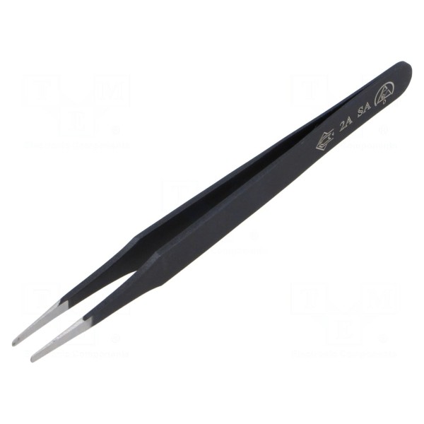 Pęseta PIERGIACOMI 2A SA ESD to narzędzie o prostej konstrukcji wyposażone w zwężone, zaokrąglone końcówki. Model ten o długości 120 mm został zaprojektowany w wersji ESD, co pozwala na wykorzystanie go w środowiskach wymagających ochrony przed wyładowaniami elektrostatycznymi.