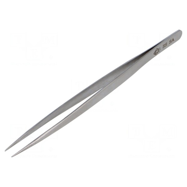 Pęseta PIERGIACOMI SS SA to narzędzie o prostej konstrukcji, przeznaczone do wykonywania prac wymagających precyzji. Całkowita długość przyrządu wynosi 140 mm.