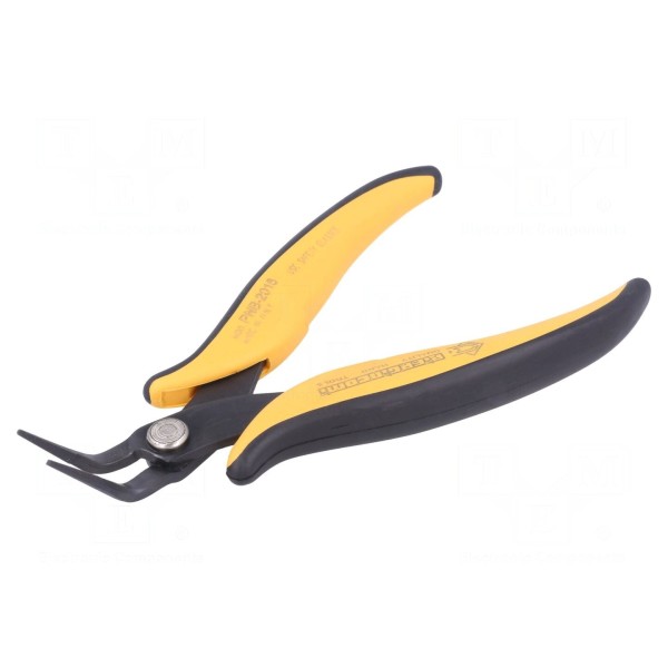 Szczypce przeznaczone są do precyzyjnego chwytania oraz gięcia elementów. Konstrukcja narzędzia obejmuje odgięte końcówki oraz gładkie powierzchnie chwytające, co pozwala na bezpieczną pracę z delikatnymi komponentami.