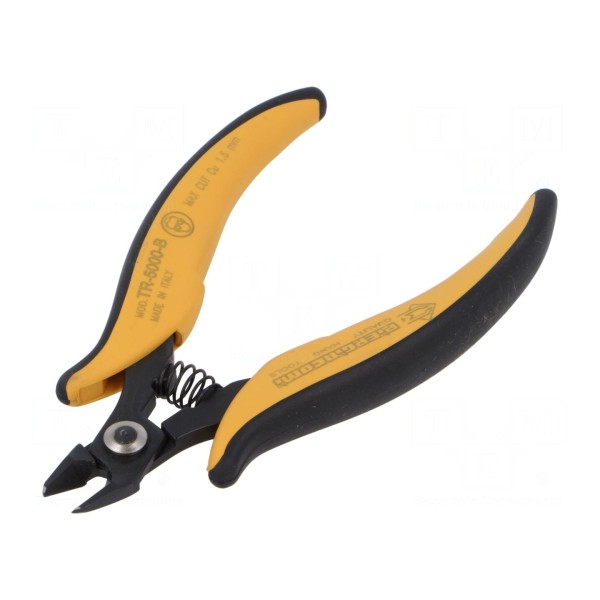 Całkowita długość szczypiec wynosi 138 mm, co zapewnia manewrowanie w miejscach o ograniczonej przestrzeni roboczej. Odgięta konstrukcja głowicy ułatwia dostęp do elementów elektronicznych na płytkach drukowanych.