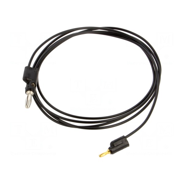 Przewód pomiarowy o długości 1,524 m przeznaczony jest do wykonywania połączeń w układach elektronicznych. Jego konstrukcja obejmuje wtyk bananowy z gniazdem osiowym 2 mm oraz wtyk bananowy wyposażony w gniazdo osiowe i poprzeczne 4 mm. Właściwość sztaplowania końcówek umożliwia rozbudowę układu pomiarowego poprzez łączenie wielu przewodów w tym samym punkcie styku.