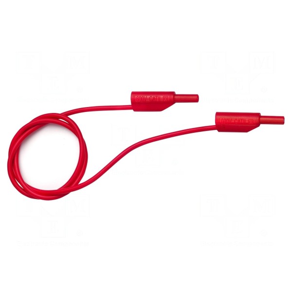 Przewód pomiarowy o długości 0,5 m wyposażony jest obustronnie w izolowane wtyki bananowe o średnicy 2 mm. Produkt charakteryzuje się prądem znamionowym 10 A oraz napięciem znamionowym 0,6 kV. Konstrukcja typu sztaplowanego umożliwia łączenie przewodów, co zwiększa elastyczność konfiguracji stanowiska pomiarowego.