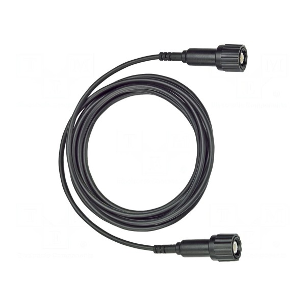 Przewód pomiarowy o długości 2 m został zakończony z obu stron wtykami BNC. Element ten charakteryzuje się prądem znamionowym 3 A oraz impedancją 50 Ω, co czyni go odpowiednim do transmisji sygnałów w układach pomiarowych.