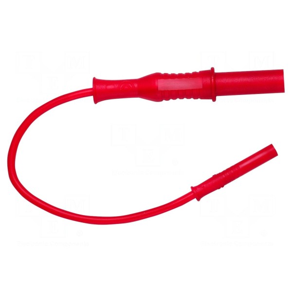 Przewód pomiarowy o długości 0,1 m wyposażony we wtyk bananowy 2 mm oraz wtyk bananowy 4 mm. Produkt przeznaczony jest do pracy przy napięciu znamionowym 33 V AC oraz 70 V DC, przy maksymalnym natężeniu prądu wynoszącym 2 A.