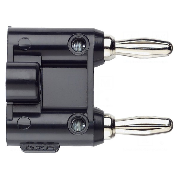 Złącze laboratoryjne w formie mostka zwiernego przeznaczone jest do pracy z wtykami bananowymi o średnicy 4mm. Element został wyposażony w dwa gniazda oraz dwa wtyki bananowe 4mm, co umożliwia łączenie urządzeń pomiarowych w konfiguracji sztaplowanej. Konstrukcja typu mostek charakteryzuje się prądem znamionowym 15A oraz dopuszczalnym napięciem roboczym do 33V AC lub 70V DC.
