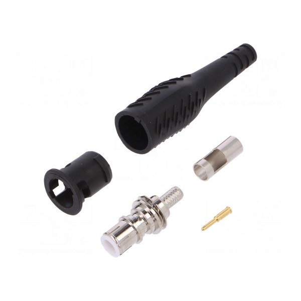 Konstrukcja złącza opiera się na stykach wykonanych z mosiądzu, które poddano procesowi niklowania oraz złocenia dla uzyskania parametrów przewodzenia. Element izolacyjny wykonano z polipropylenu w kolorze czarnym, zapewniając trwałość obudowy w warunkach roboczych od 5°C do 40°C.