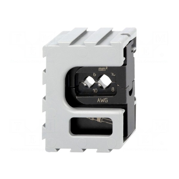 Szczęki do zaciskania przeznaczone są do obróbki terminali. Element jest przystosowany do pracy z przewodami o przekroju 6mm² oraz 10mm².