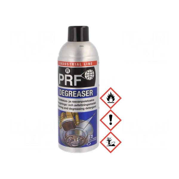 Preparat czyszczący PRF DEGREASER to środek przeznaczony do odtłuszczania powierzchni. Substancja dostępna jest w postaci aerozolu, co umożliwia wygodną aplikację na czyszczone elementy.