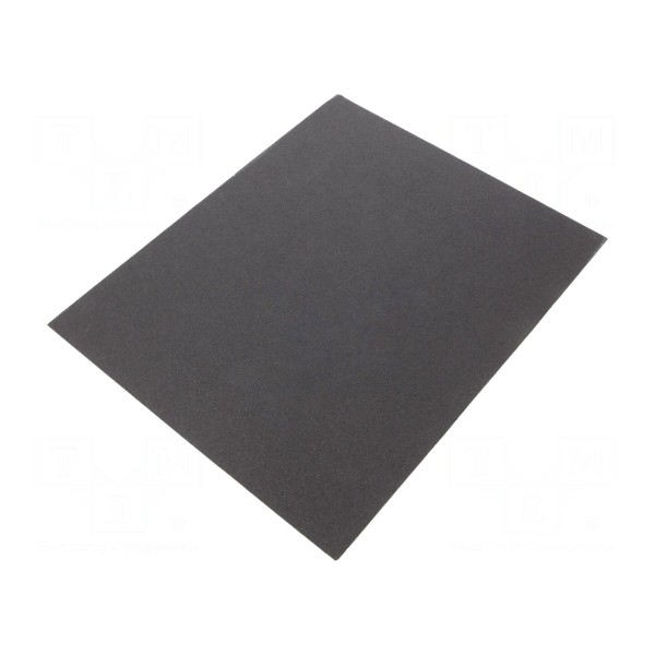 Arkusz posiada wymiary 280x230mm. Struktura materiału umożliwia dopasowanie się do obrabianych kształtów, zapewniając równomierną pracę na całej powierzchni.