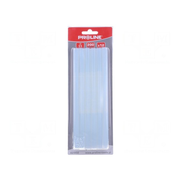 W opakowaniu znajduje się 12 sztyftów o długości 0,2m każdy. Produkt jest kompatybilny ze standardowymi pistoletami do klejenia na gorąco obsługującymi wkłady o średnicy 11mm.