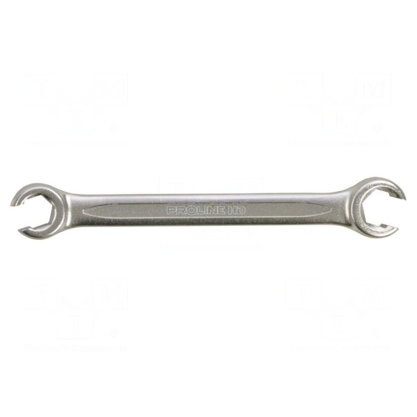 Klucz oczkowy półotwarty PROLINE 36050 to narzędzie dwustronne o rozmiarach 10mm oraz 12mm. Jego konstrukcja o długości całkowitej 152mm została wykonana ze stali chromowo-wanadowej zgodnie z wymogami normy DIN 3118.