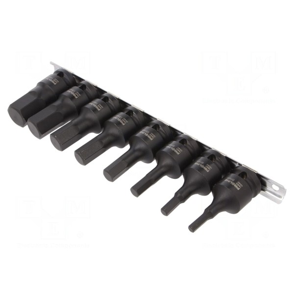 Zestaw 8 kluczy nasadowych udarowych 6-kątnych HEX 5–19mm
