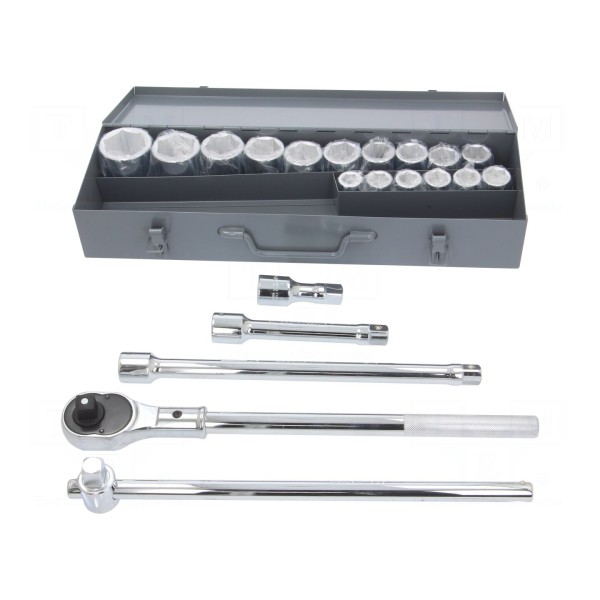 Klucz nasadowy 6-kątny 3/4", 21 sztuk w zestawie