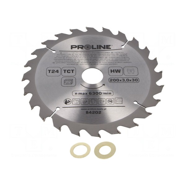 Piła tarczowa PROLINE przeznaczona jest do obróbki drewna. Tarcza o średnicy 200 mm wyposażona jest w 24 zęby wykonane z węglika spiekanego, co przekłada się na efektywność cięcia materiału. Narzędzie zostało poddane hartowaniu, co wpływa na jego charakterystykę podczas pracy.