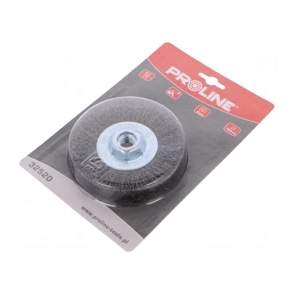 Szczotka tarczowa o średnicy 100 mm jest przeznaczona do współpracy z elektronarzędziami wyposażonymi w trzpień z gwintem M14. Konstrukcja elementu umożliwia mocowanie bezpośrednio na wrzecionie urządzenia. Akcesorium o wymiarach 100 mm przystosowane jest do pracy z odpowiednimi szlifierkami kątowymi posiadającymi uchwyt w rozmiarze M14.