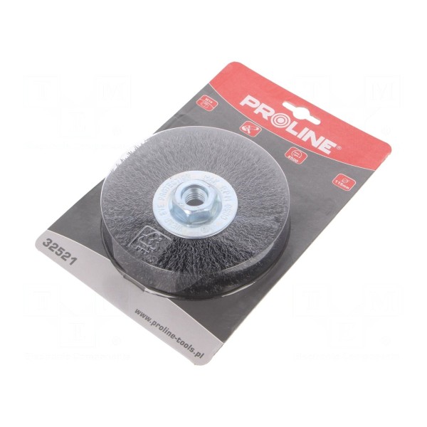 Szczotka tarczowa przeznaczona jest do współpracy z elektronarzędziami wyposażonymi w trzpień z gwintem M14. Element posiada średnicę 115mm, co pozwala na obróbkę powierzchni o określonym zasięgu.