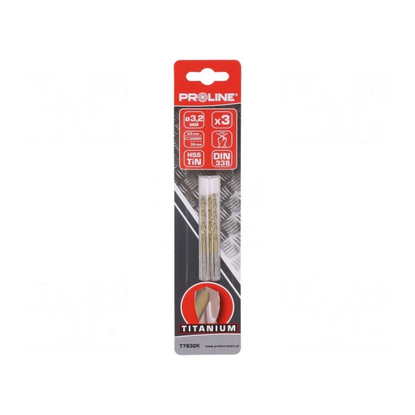 Wiertło do metalu 3,2mm, stal HSS-R, 3 sztuki