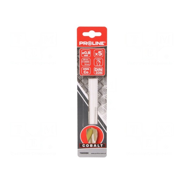 Wiertło do metalu HSS-Co, średnica 0,8mm, 5 sztuk