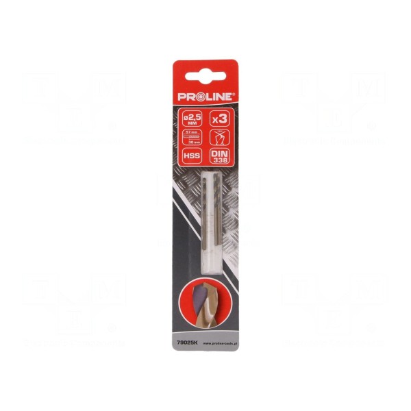 Wiertło do metalu HSS o średnicy 2,5mm, 3 sztuki