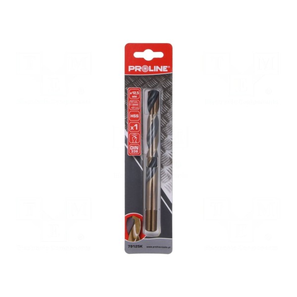 Wiertło do metalu wykonane ze stali szybkotnącej HSS o średnicy 12,5 mm. Produkt przeznaczony jest do obróbki materiałów metalowych.
