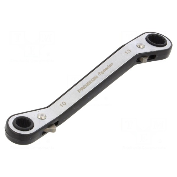 Klucz oczkowy PROXXON 23207 to dwustronne narzędzie wyposażone w mechanizm grzechotkowy. Produkt obsługuje rozmiary 10 mm oraz 13 mm.