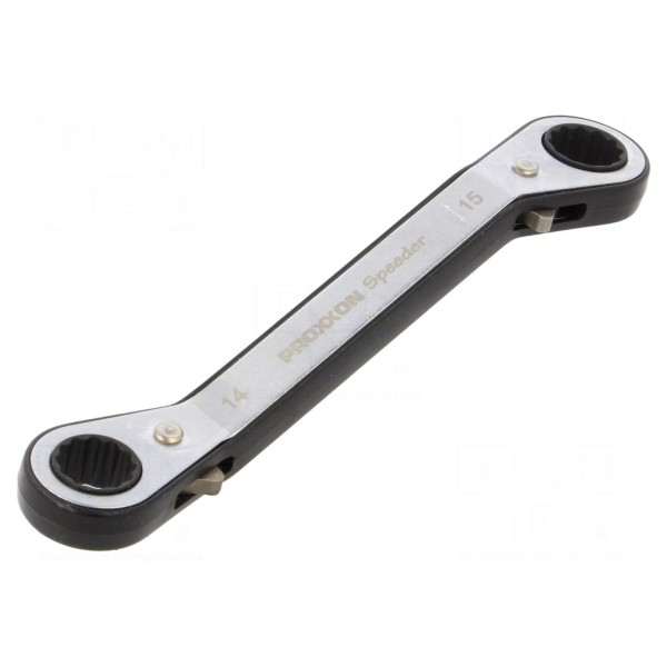 Klucz oczkowy dwustronny z grzechotką 14mm i 15mm