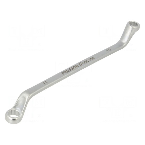 Klucz oczkowy dwustronny o rozmiarach 10 mm oraz 11 mm. Narzędzie zostało wykonane w konstrukcji SlimLine, co umożliwia pracę w ograniczonych przestrzeniach roboczych.