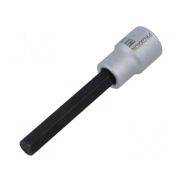 Całkowita długość nasadki wynosi 100mm. Konstrukcja umożliwia obsługę śrub z gniazdem sześciokątnym w miejscach o ograniczonej przestrzeni.