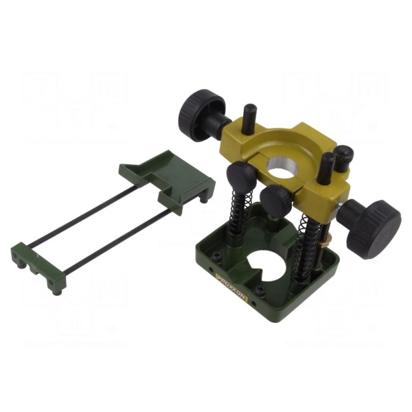 Przystawka do frezowania przeznaczona jest do współpracy z elektronarzędziami marki Proxxon. Konstrukcja elementu umożliwia rozszerzenie zakresu zastosowań urządzeń bazowych podczas obróbki materiałów. Produkt dedykowany jest do pracy z wybranymi modelami narzędzi tego samego producenta. Montaż przystawki pozwala na stabilne prowadzenie frezu w trakcie wykonywanych zadań warsztatowych.