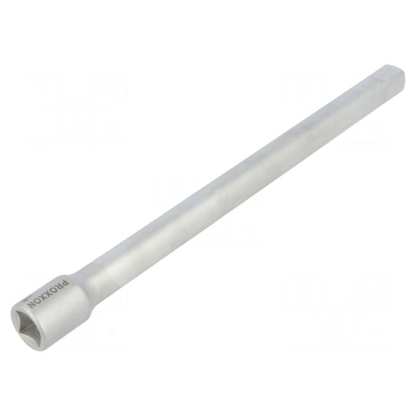 Przedłużka marki PROXXON o rozmiarze gniazda 1/2" przeznaczona jest do współpracy z narzędziami nasadowymi. Element posiada długość 0,25m, co umożliwia dostęp do śrub i nakrętek znajdujących się w głębokich gniazdach lub miejscach o ograniczonym dostępie.