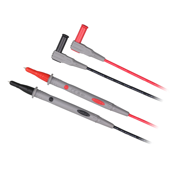 Przewody mają długość 900 mm, co pozwala na komfortową pracę, a 130 mm końcówki pomiarowe z igłami o długości 16,3 mm umożliwiają dokładne i stabilne podłączenie do mierzonych obwodów. Przewody spełniają normy EN 61010-031 A1:2008, co dodatkowo potwierdza ich wysoką jakość i bezpieczeństwo użytkowania.