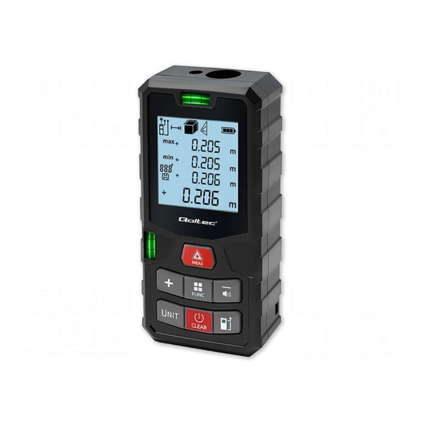 Dalmierz laserowy QOLTEC 50687 służy do precyzyjnych pomiarów odległości, pola powierzchni oraz objętości. Urządzenie oferuje zakres pomiarowy od 50mm do 120m przy zachowaniu dokładności na poziomie ±2mm i rozdzielczości 1µm. Użytkownik może dokonywać pomiarów pojedynczych oraz ciągłych, korzystając z różnych jednostek, takich jak metry, stopy czy cale.