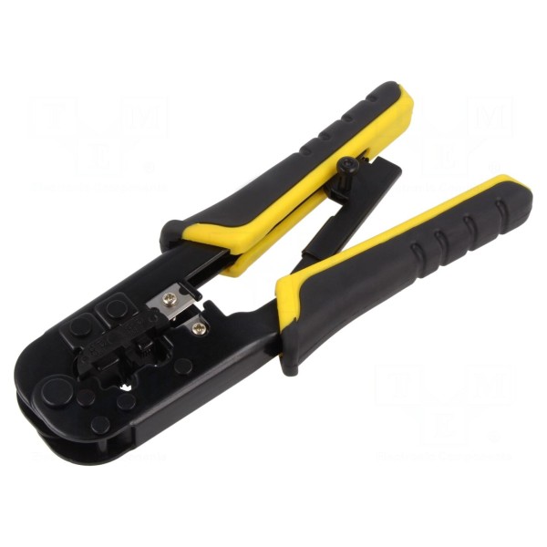 Narzędzie przeznaczone jest do zaciskania złączy typu RJ11 (6p4c), RJ12 (6p6c) oraz RJ45 (8p8c). Konstrukcja wykonana została ze stali, co zapewnia wymaganą wytrzymałość podczas pracy z przewodami.